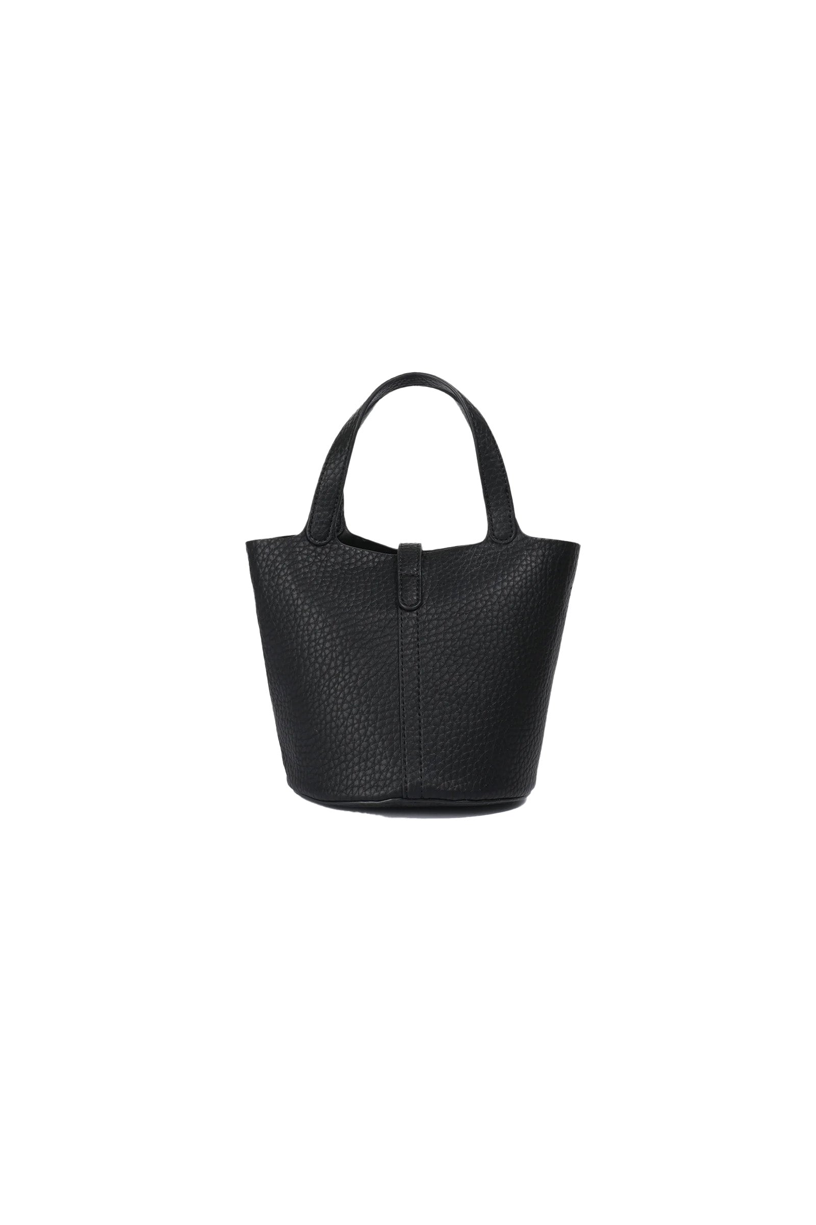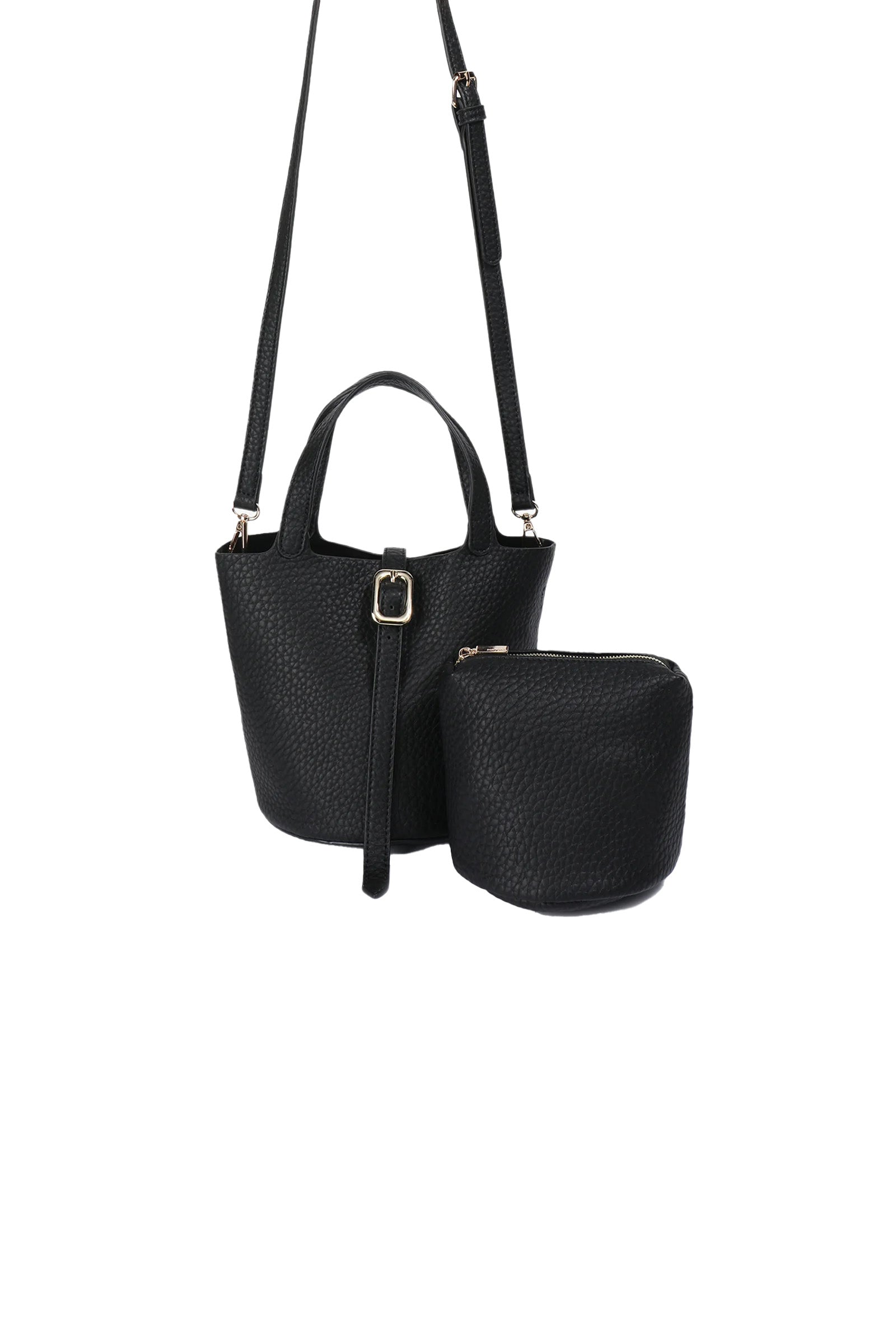 Discover everyday sophistication in this chic black bucket bag featuring rich pebbled leather texture and a sleek silver buckle detail. The compact silhouette with structured handles offers both style and functionality perfect for essentials on the go. Carry by hand for polished appeal or add a crossbody strap for hands-free convenience from coffee dates to evening outings.