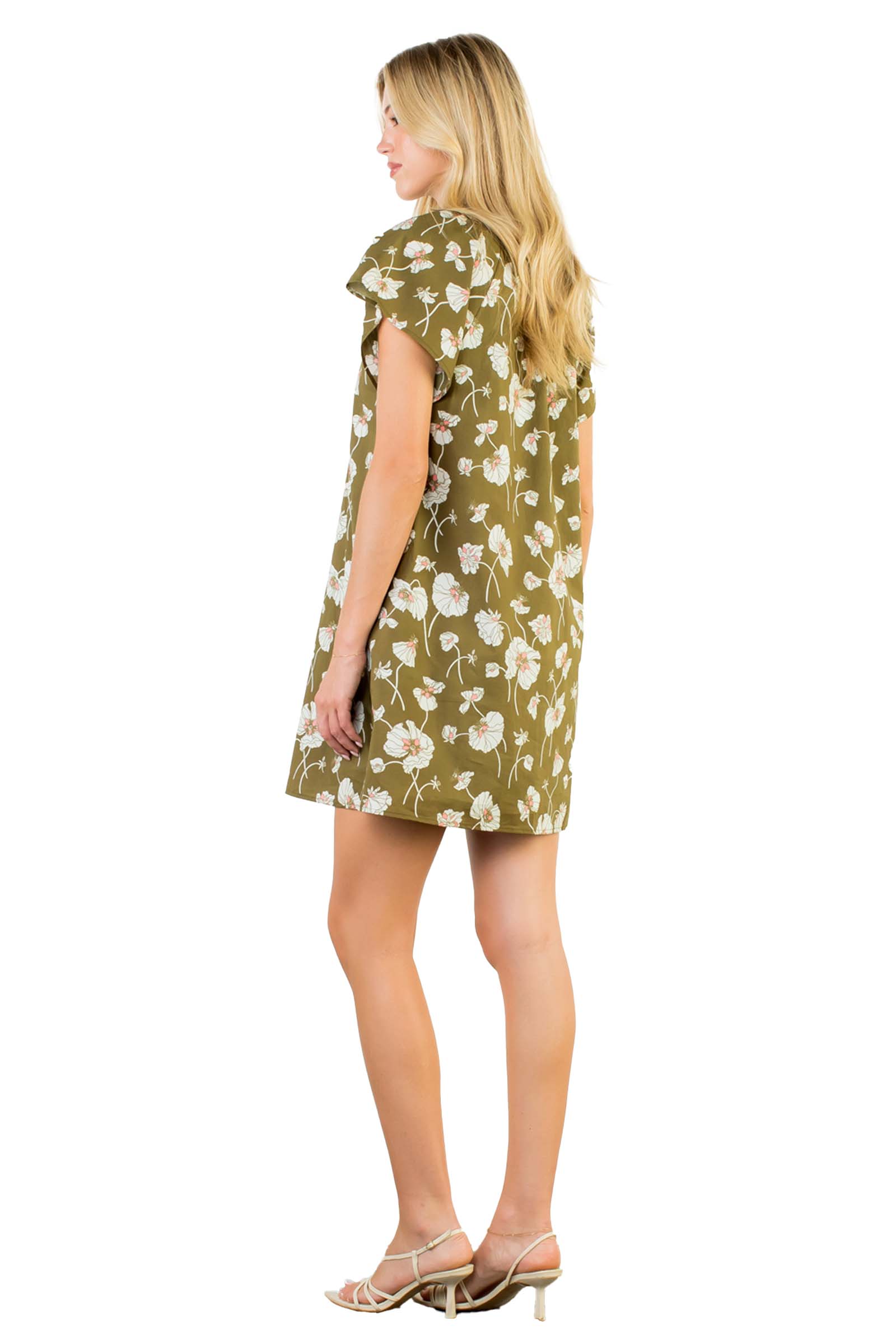 Lily Short Sleeve Floral V-Neck Dress - Olive Floral