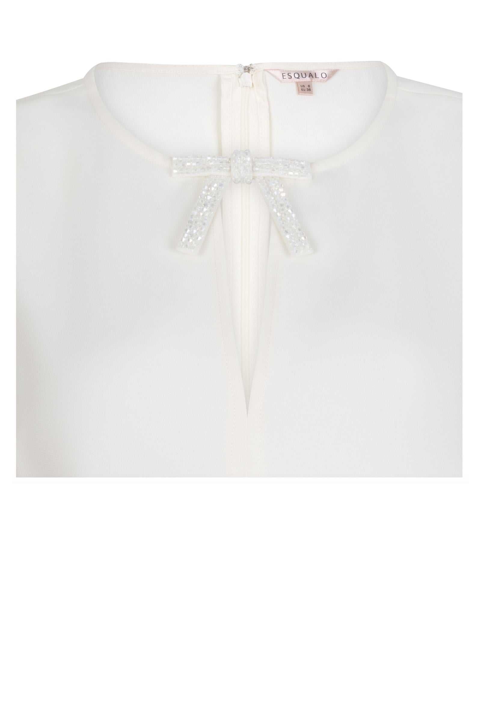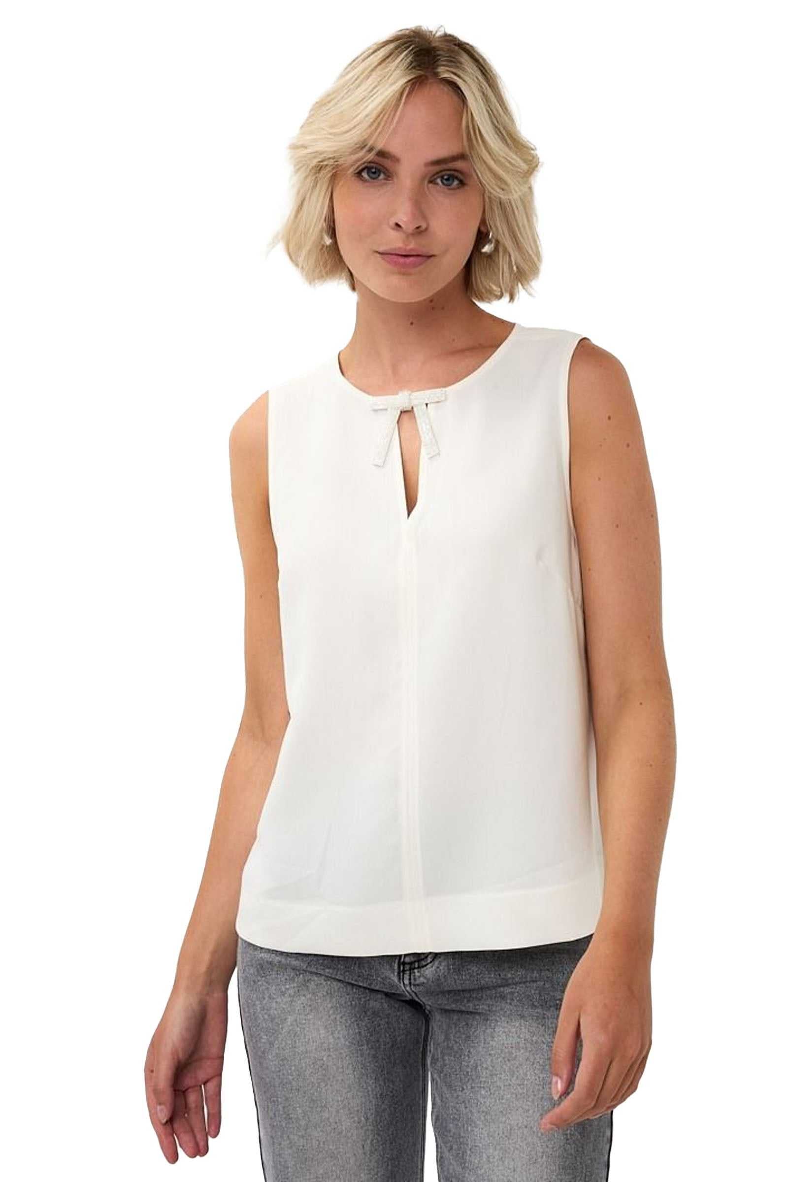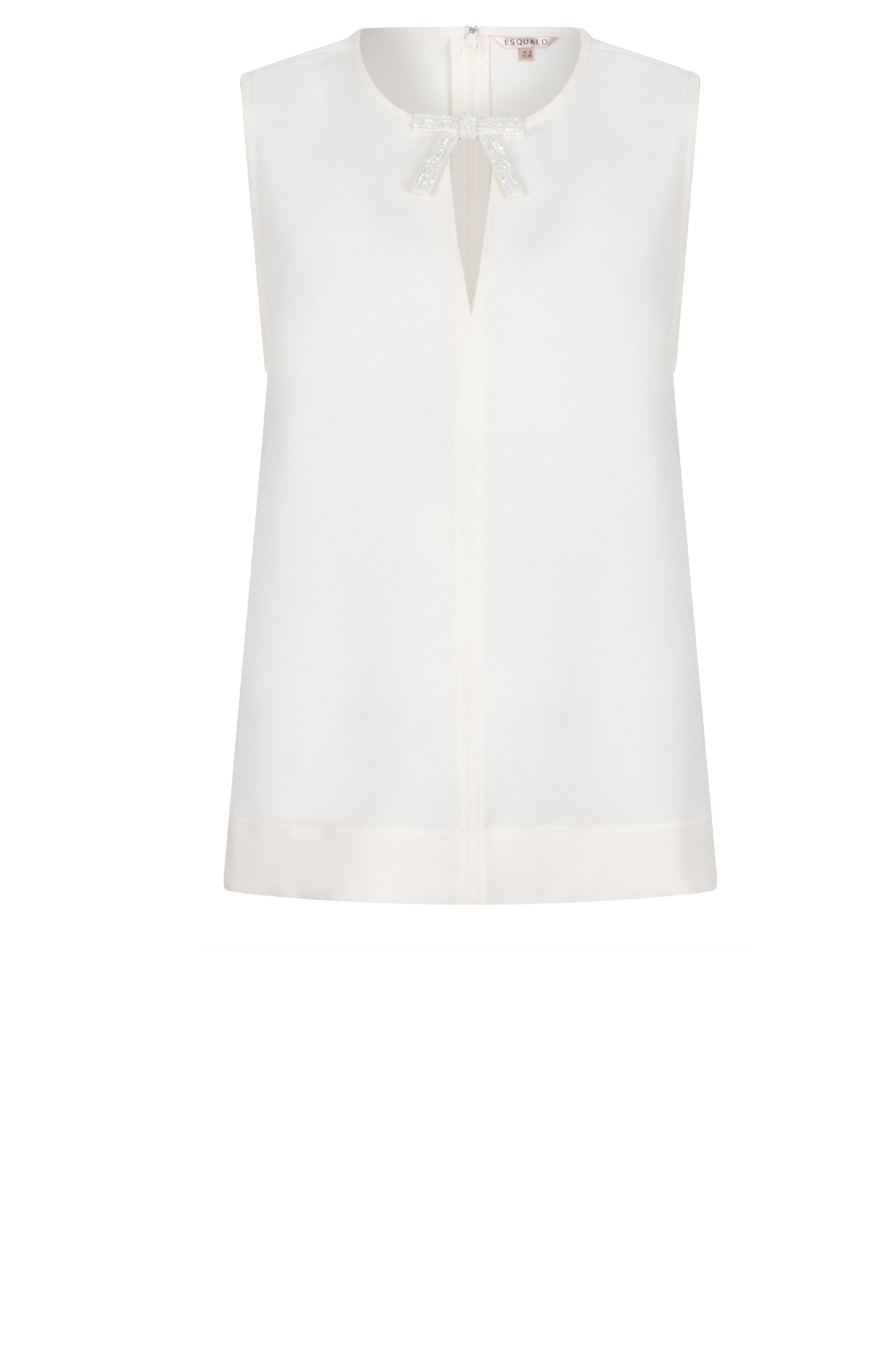 Elevate your everyday elegance with the Bow Brooch Blouse in Off White, a refined sleeveless top that seamlessly blends classic sophistication with contemporary style. This versatile piece features an eye-catching keyhole neckline adorned with a delicate bow brooch detail, creating a feminine focal point that sets this blouse apart from ordinary basics.