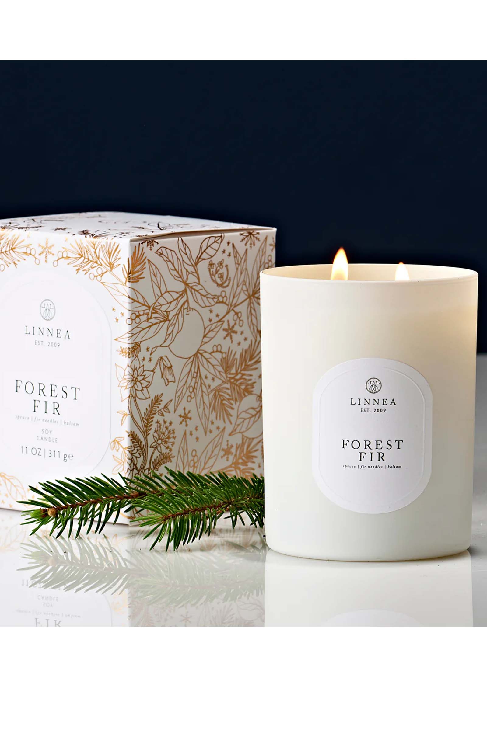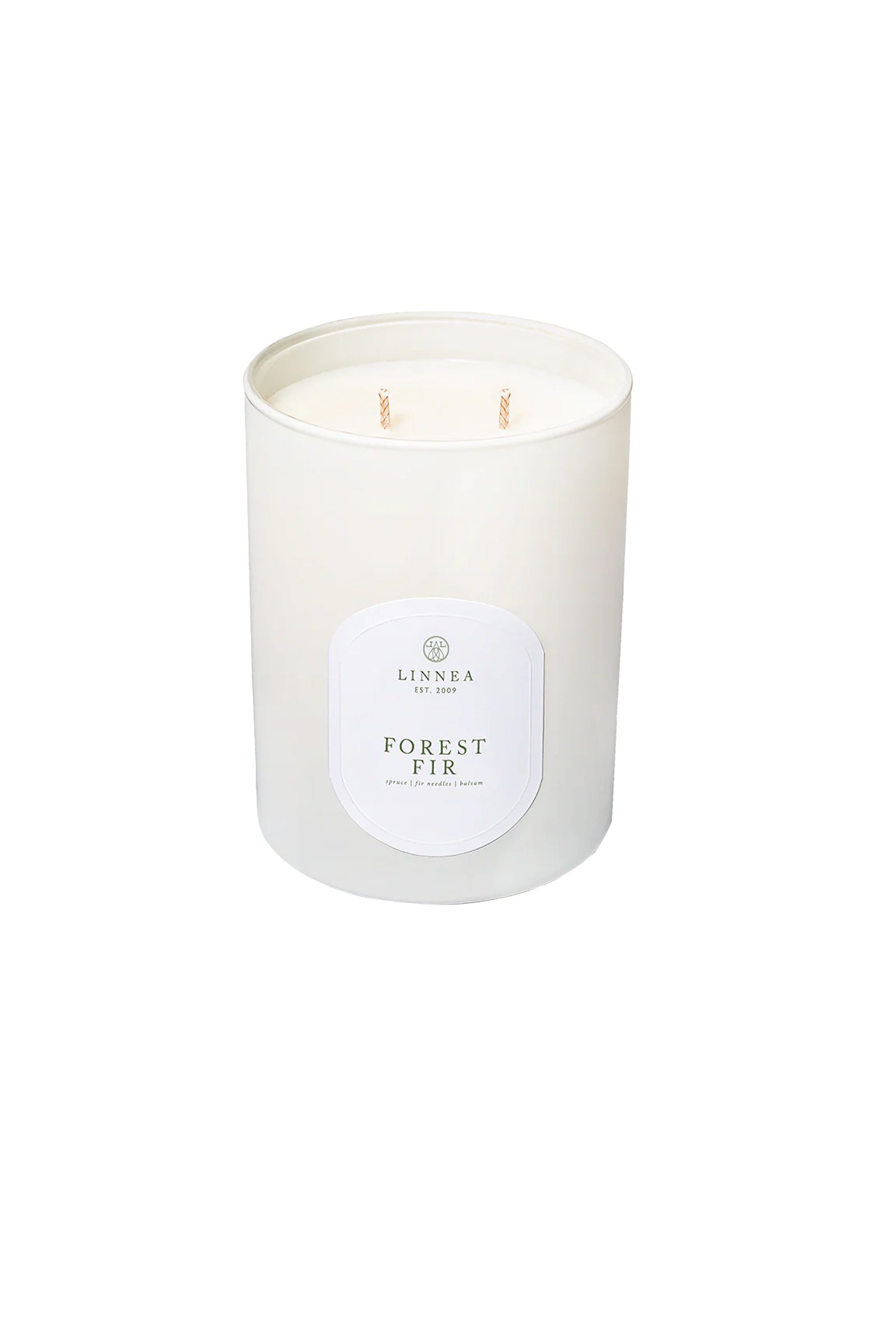 A walk through snow-laden forests, Forest Fir captures the crisp majesty of winter’s evergreens. Spruce, fir needle, and balsam blend into a resinous, uplifting aroma. Housed in a light-diffusing alabaster white glass vessel and boxed in white packaging with gold foil accents, it’s winter, illuminated.