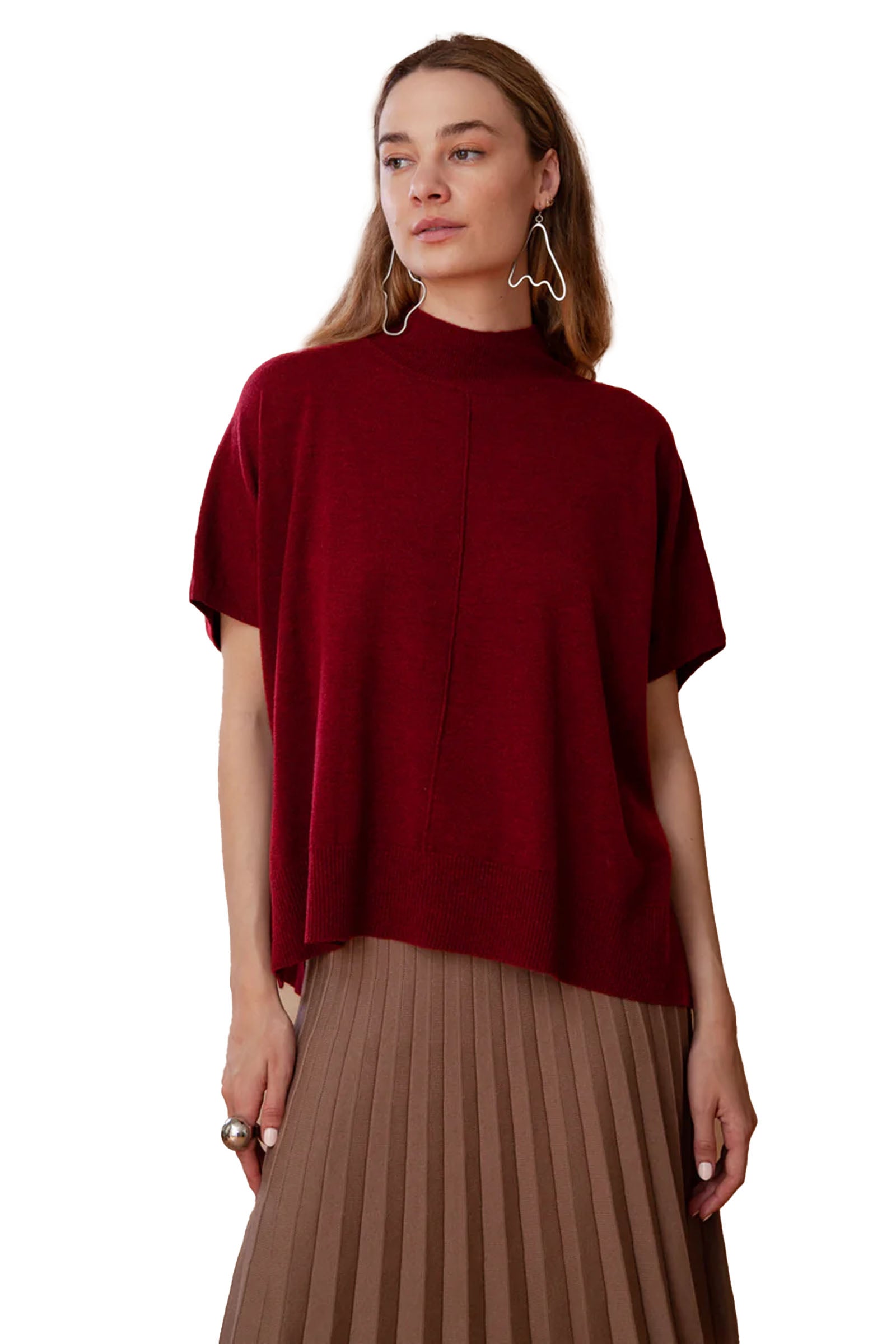 Discover modern comfort in this versatile auburn red poncho-style top featuring a sophisticated mock neck and flowing silhouette. The soft knit fabric and relaxed drape create an effortlessly chic look that works from office to weekend. Layer over fitted pants and ankle boots for contemporary styling or pair with leggings for cozy casual days.