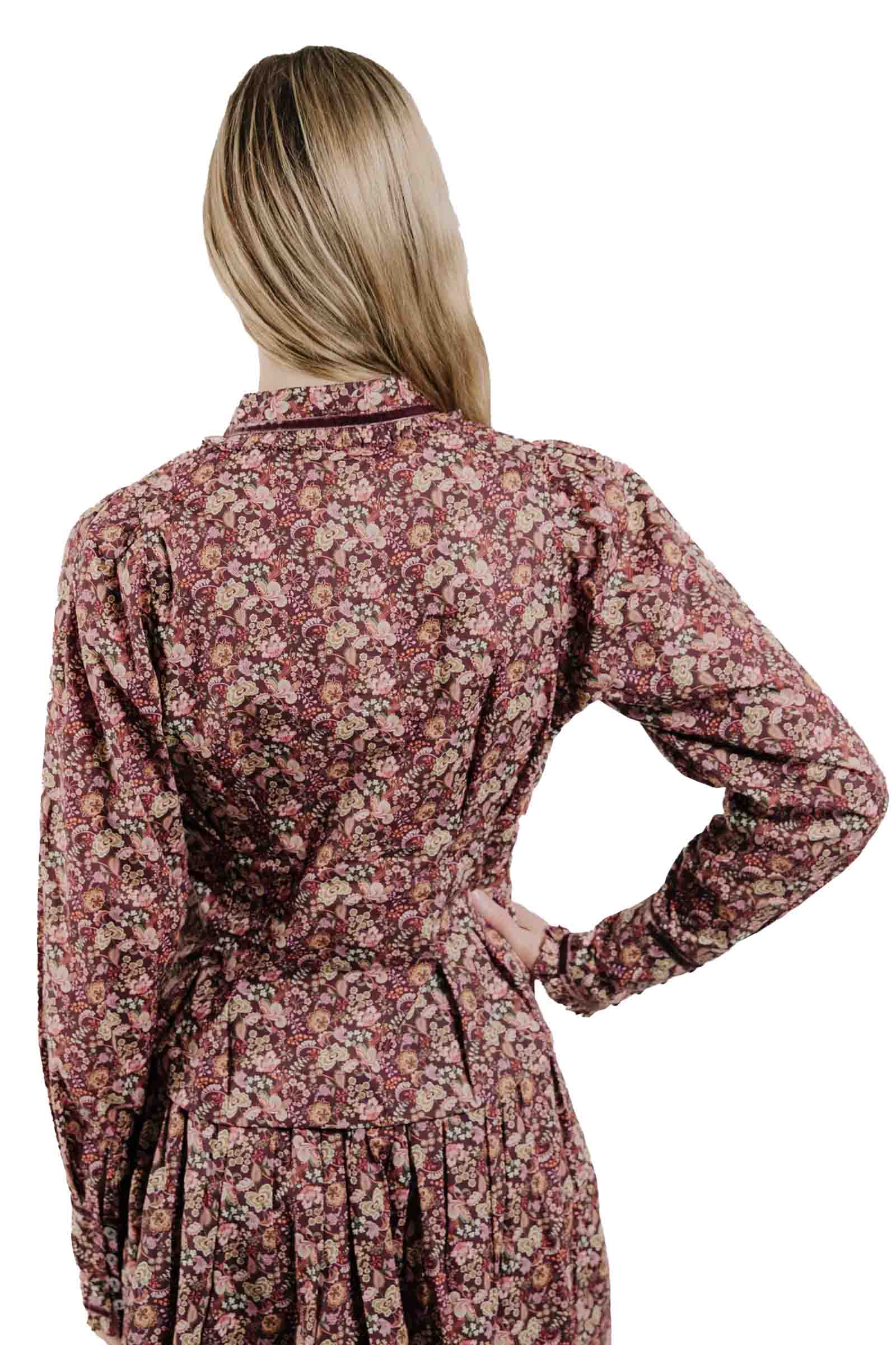 The Cornelia Top in Pippa’s Symphony Liberty Print is a romantic take on a classic shirt silhouette with princess darts. Crafted in soft Liberty fabric, it features a button-up front, long sleeves with refined cuff