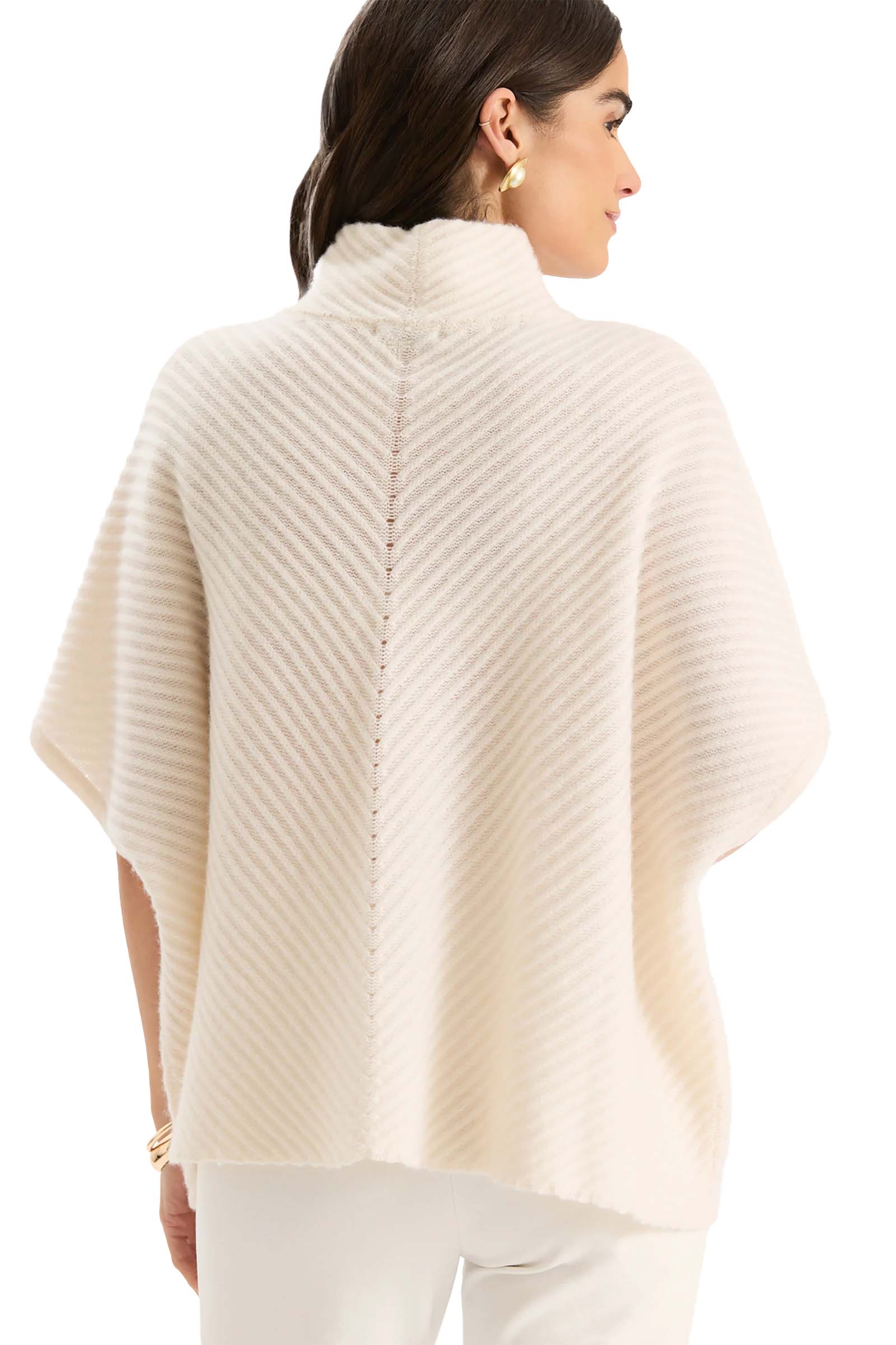 Wrap yourself in effortless elegance with our Lucia Cashmere Blend Capelet. Crafted from a luxurious cashmere blend, this lightweight yet cozy layer offers a soft, breathable feel perfect for year-round wear. Its chic draped silhouette, relaxed short sleeves, and subtle ribbed texture create a timeless look that transitions seamlessly from casual outings to elevated evenings.