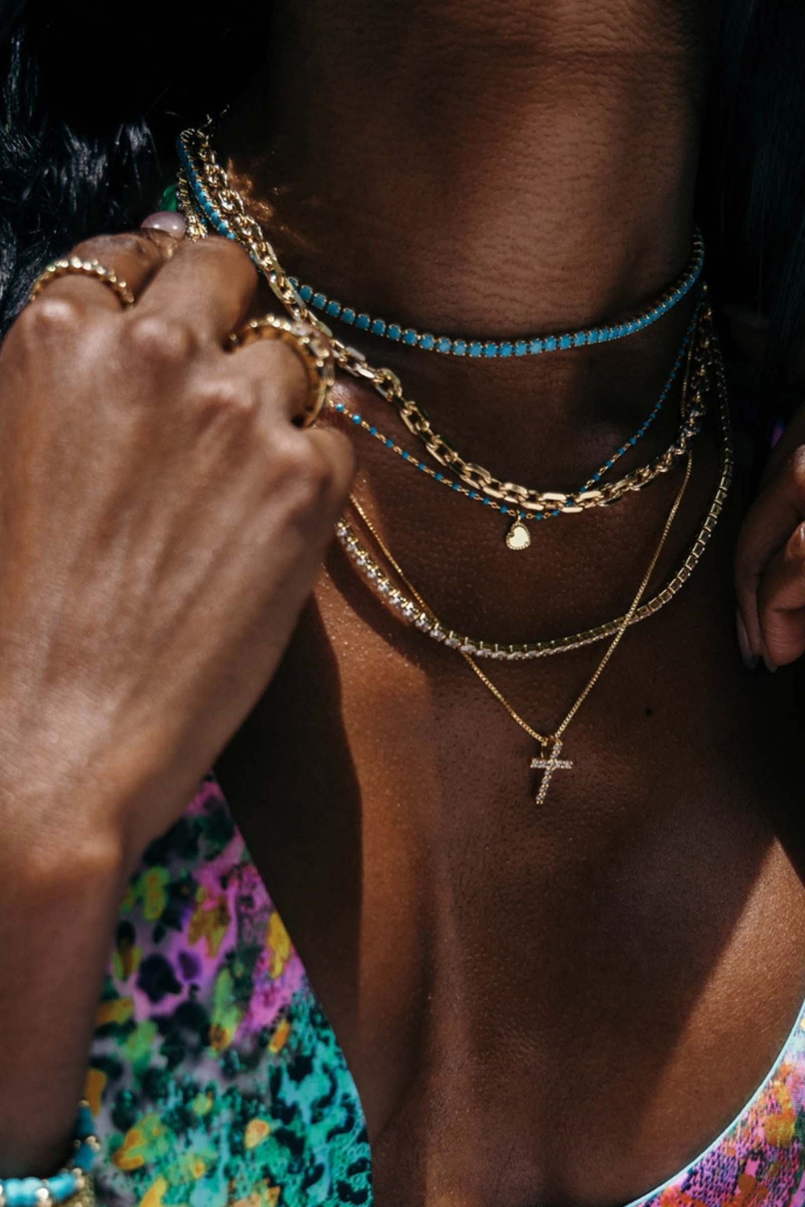 Meet the Raya CZ Cross — a beautifully refined necklace that brings subtle sparkle and modern grace to any look. The dainty cross pendant is lined with luminous CZ stones, creating a timeless piece that layers effortlessly or shines on its own. Elegant, meaningful, and endlessly wearable, it’s a must-have for any jewelry collection.
