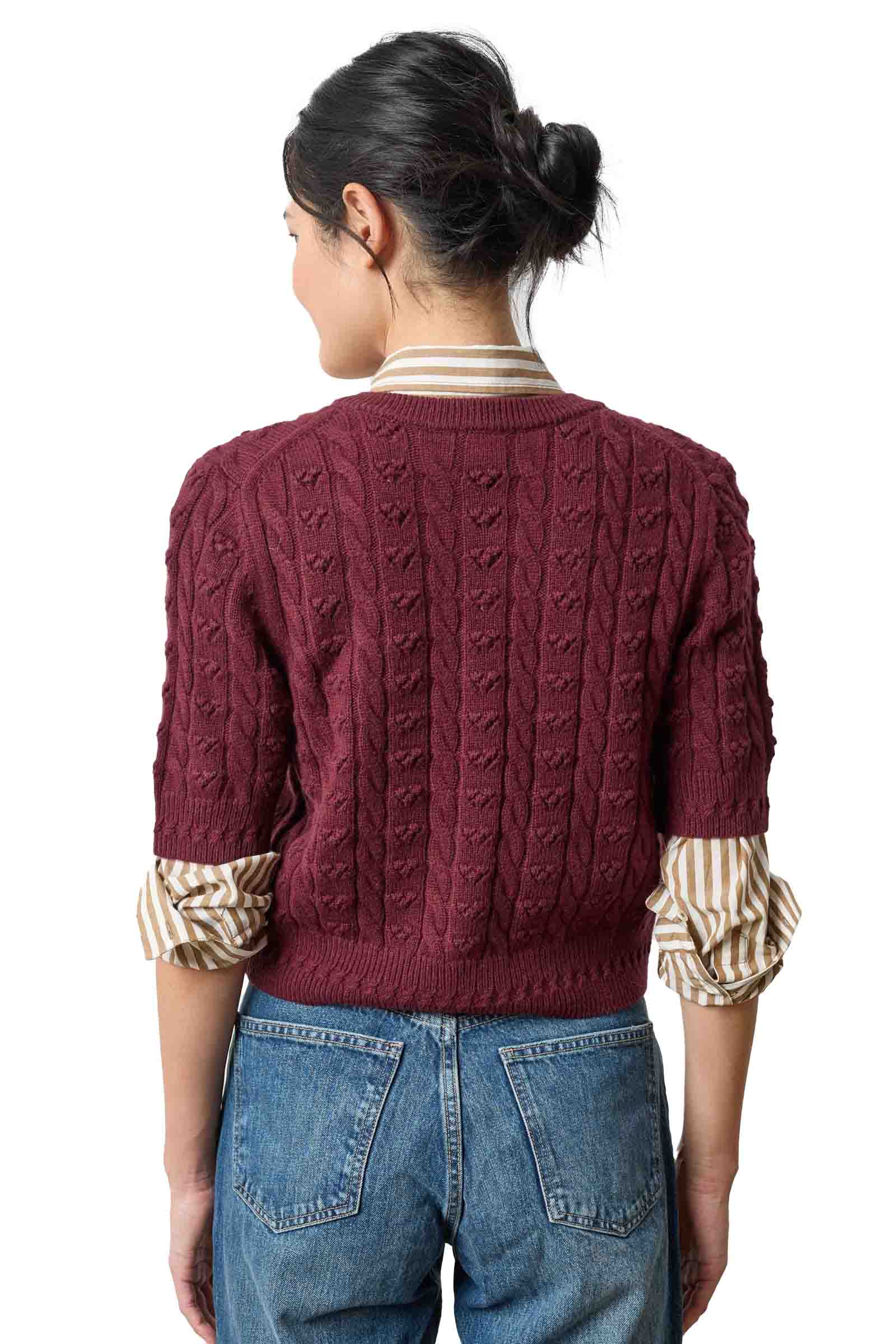 Short Sleeve Cardigan Sweater - Plum