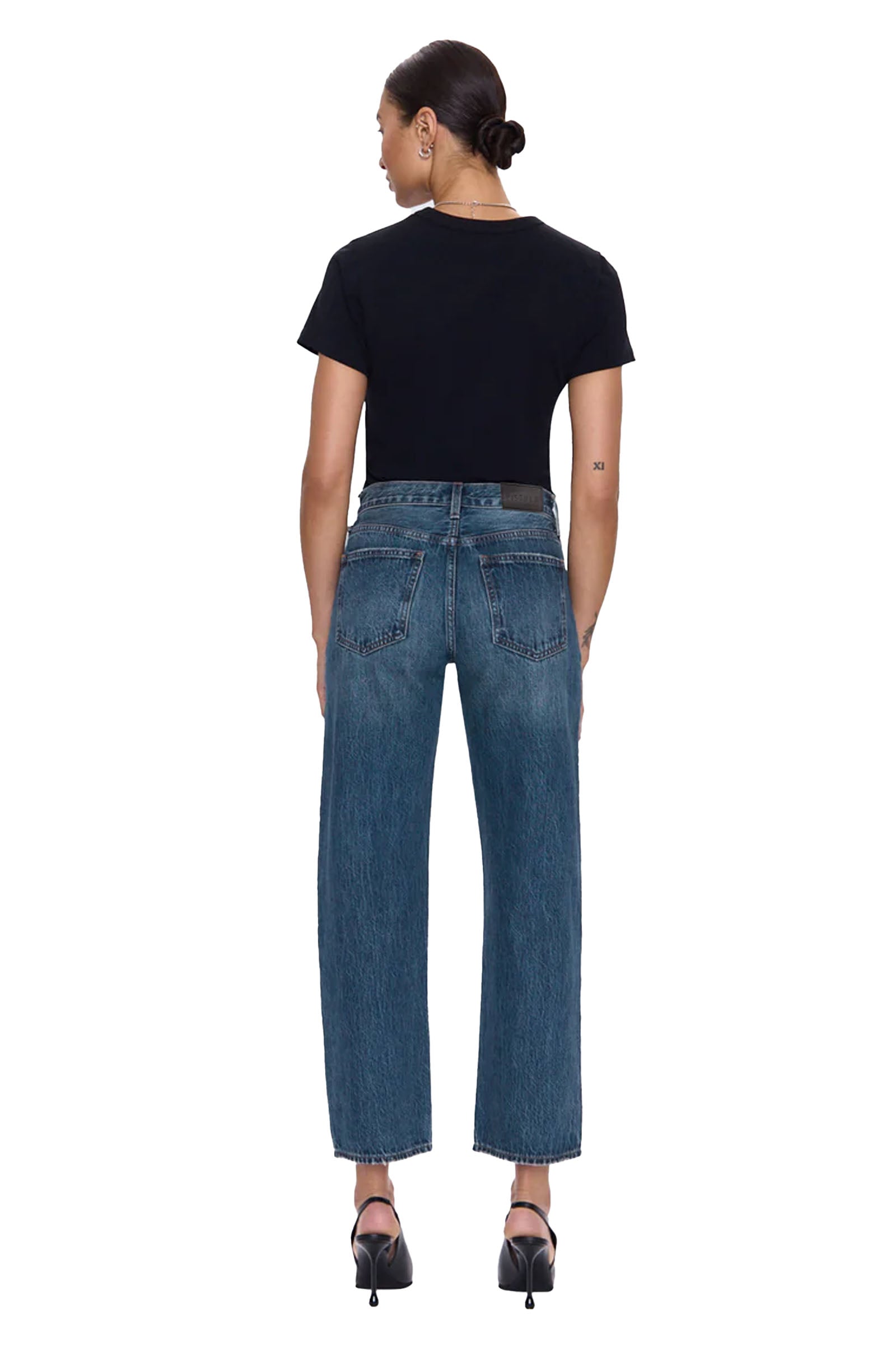 The best-selling jean that understands proportions. Lexi sits at the perfect mid-rise with our signature bowed straight leg, and a subtle curve at the knee that creates dimension without effort. Finished with a 29" inseam, the silhouette tapers to a cropped ankle with a clean hem. Crafted from our rigid denim in Artisan, a rich dark wash with gentle fading around the knees and thighs.