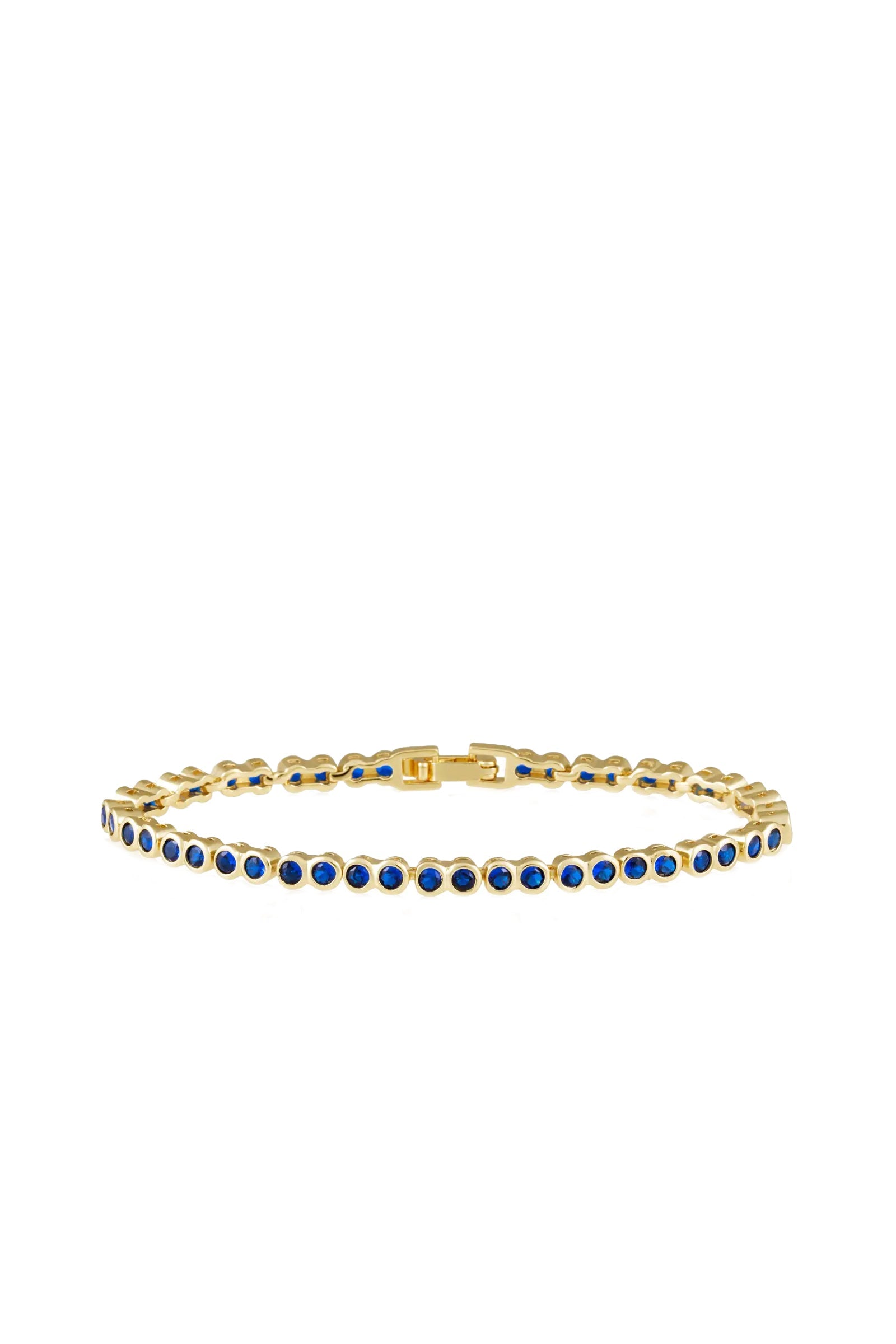 Add a vibrant touch to your everyday stack with the Bezel Tennis Bracelet in Sapphire by Sahira. Featuring a row of brilliant sapphire-blue CZ stones set in sleek gold bezels, this classic silhouette delivers just the right balance of color and sparkle. Elegant on its own or layered with your favorite bracelets, it’s designed to elevate both casual and dressy looks.