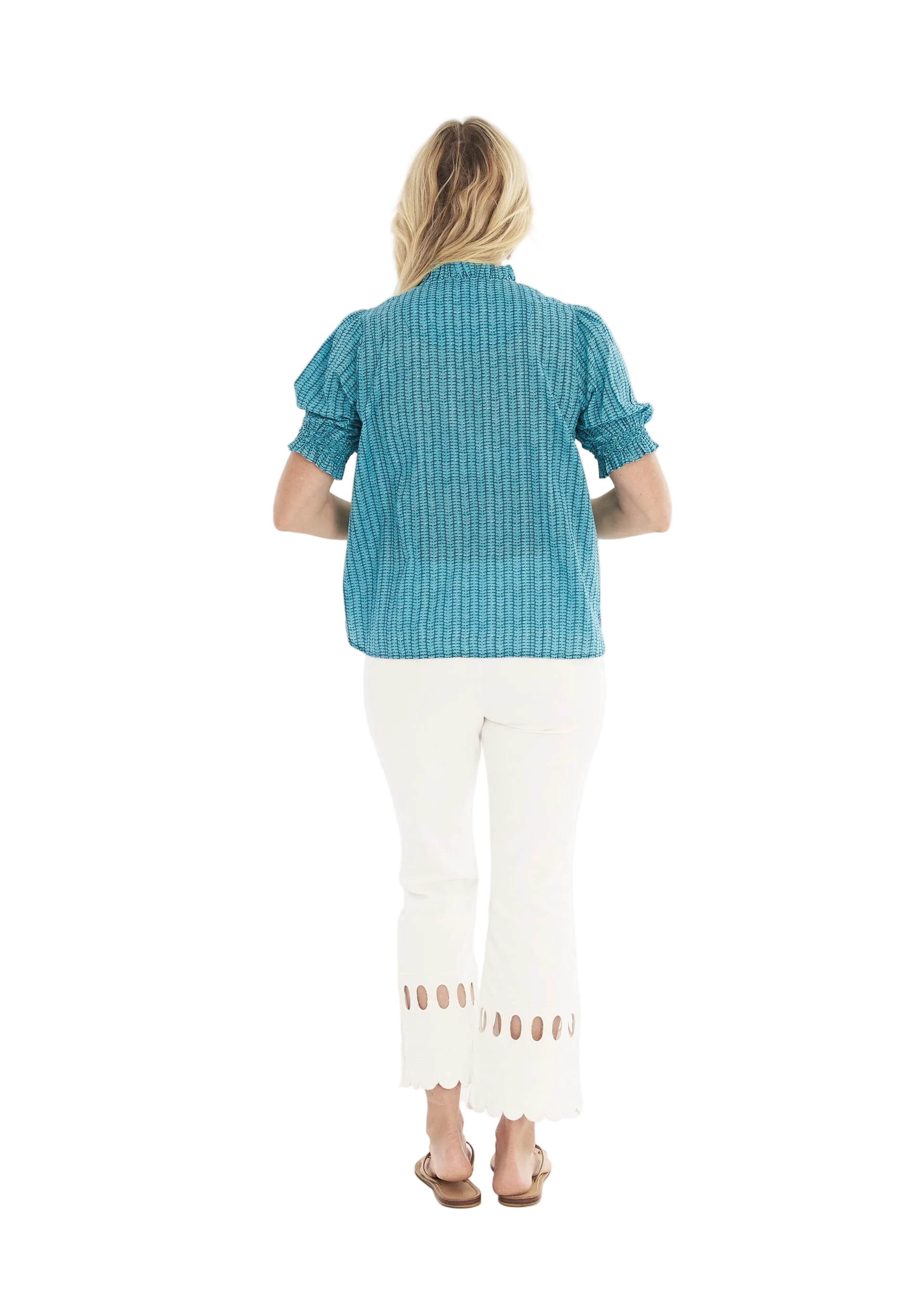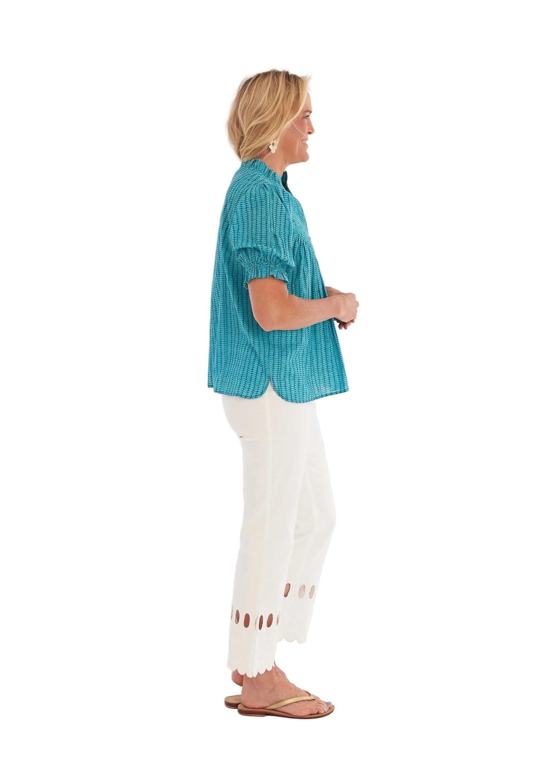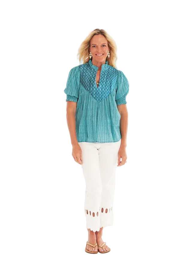 Fresh, vibrant, and effortlessly polished, the Cayman Top in Birch Lagoon by CK Bradley is a standout staple for the season. Crafted from crisp cotton in a refreshing lagoon hue, this easy silhouette blends classic charm with elevated detail.