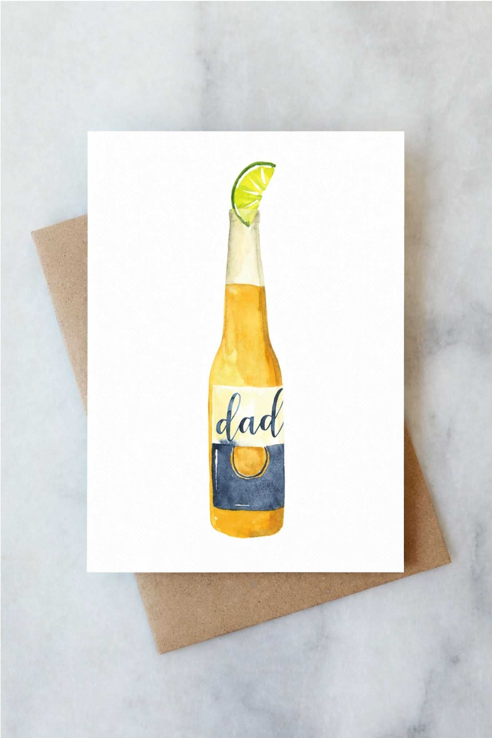 For the dad who knows how to kick back and enjoy a cold one—this laid-back greeting card is the perfect way to celebrate him. Featuring a hand-painted watercolor beer bottle with a fresh lime wedge and a playful “dad” label, it’s equal parts thoughtful and fun.
