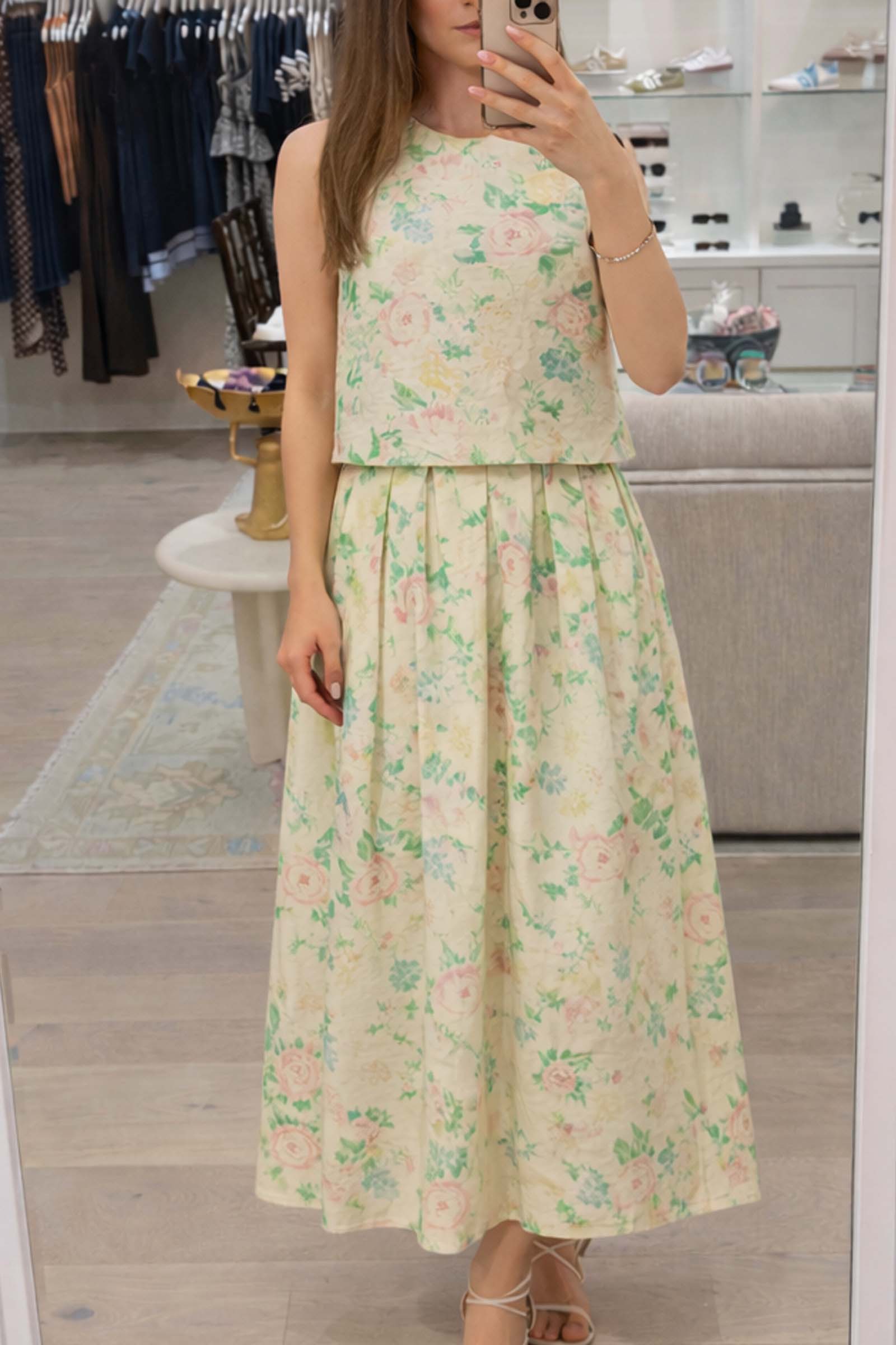 Elevate your separates collection with the Hunter Bell Manning Top in Garden Rose Peony. This sleeveless top perfectly balances structured sophistication with a romantic, vintage-inspired floral aesthetic, making it an essential piece for your warm-weather rotation.