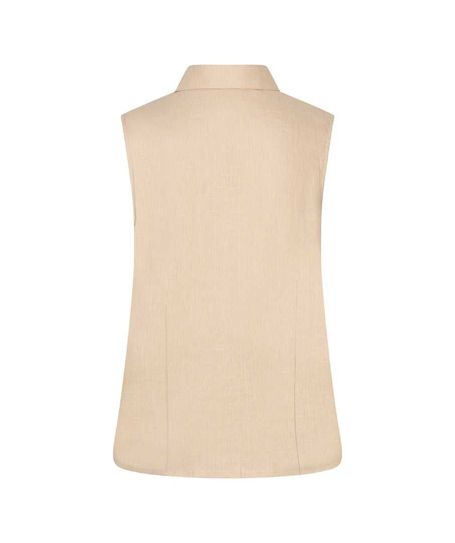 An easy, elevated essential, this sleeveless linen blouse by Esqualo is designed for effortless warm-weather dressing. Crafted in a soft sand hue, it features a clean, tailored silhouette with a classic pointed collar and button-front closure for a polished yet relaxed feel.